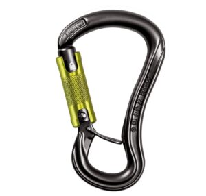 Dies ist ein super Schraubkarabiner mit Verdrehschutz und ein Stahl-Inlay im Scheitelpunkt, das die Abnutzung durch die Seilreibung verhindert.
